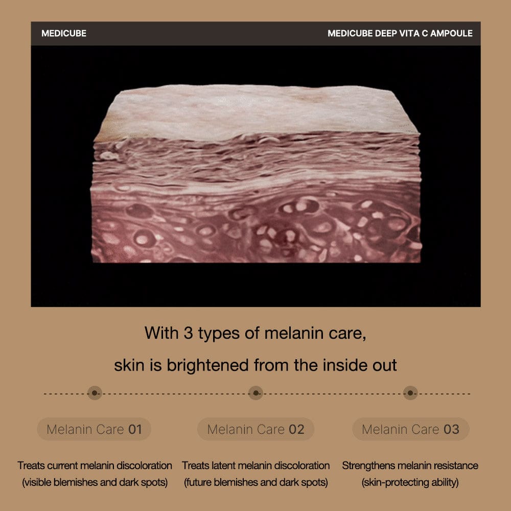 Uneven pigmentation starts deep in the skin and rises to the surface. For effective brightening, not only does the skin surface have to be treated,latent melanin discoloration in the deepest layers must also be cared for.